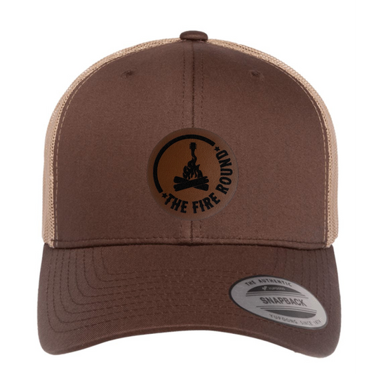 THE FIRE ROUND SNAP BACK CHESTNUT LEATHER PATCH